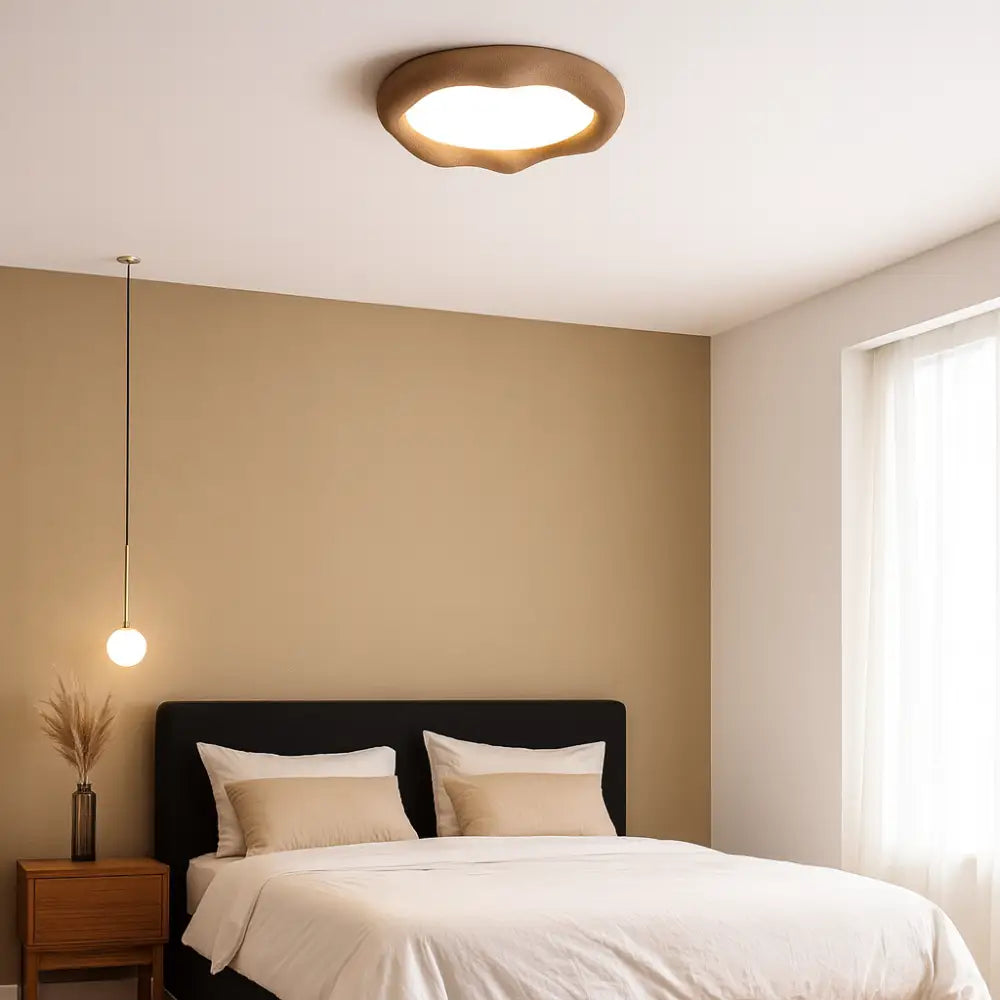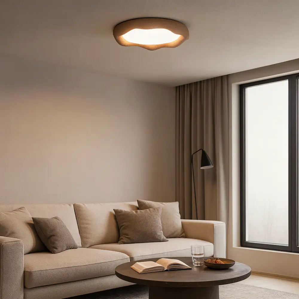 Inspiré du style wabi-sabi, ce plafonnier LED Nordique  apporte une allure organique et un design chaleureux à votre intérieur. Sa silhouette irrégulière, effet terre/bois marron, crée une lumière douce qui transforme chambre, salon ou bureau en espace de détente.